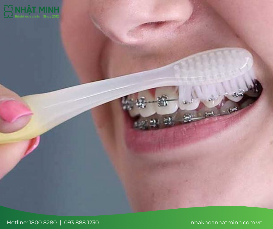 Khi chải, cần làm sạch lần lượt mặt trước, mặt sau và mặt nhai của răng. Đối với vùng mắc cài, nên chú ý chải nhẹ nhàng phía trên và phía dưới mắc cài để loại bỏ mảng bám tích tụ quanh dây cung. Thời gian chải răng nên kéo dài đủ lâu để đảm bảo khoang miệng được làm sạch toàn diện.