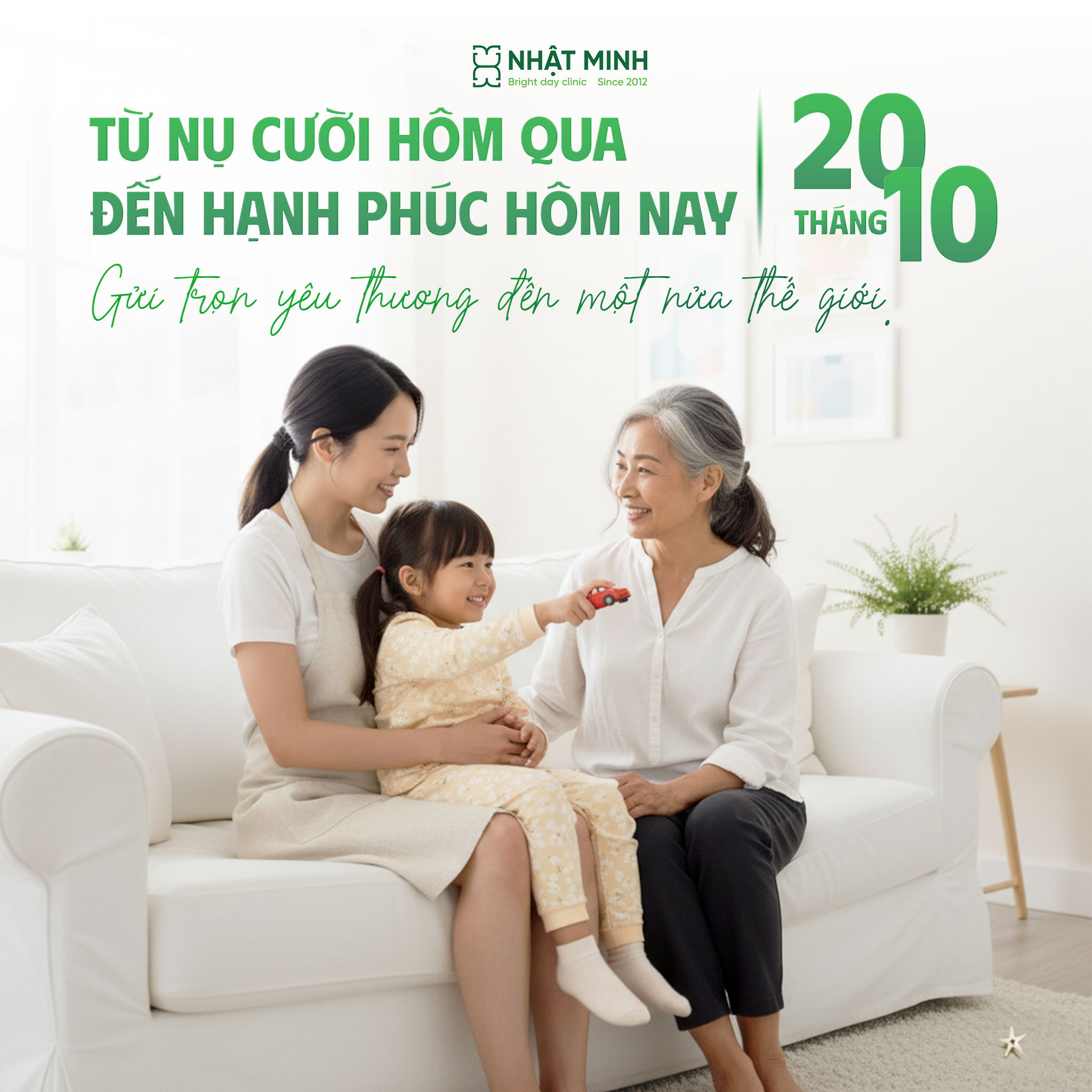 Nhân Ngày Phụ nữ Việt Nam 20/10, Nha khoa Nhật Minh xin gửi đến những người phụ nữ tuyệt vời, những người mẹ, người vợ, người bạn, và những người truyền cảm hứng lời chúc tràn đầy yêu thương. Chúc các chị em luôn rạng rỡ như ánh nắng ban mai, mạnh mẽ như những ngọn gió tháng Mười, và hạnh phúc với nụ cười rực rỡ của chính mình.