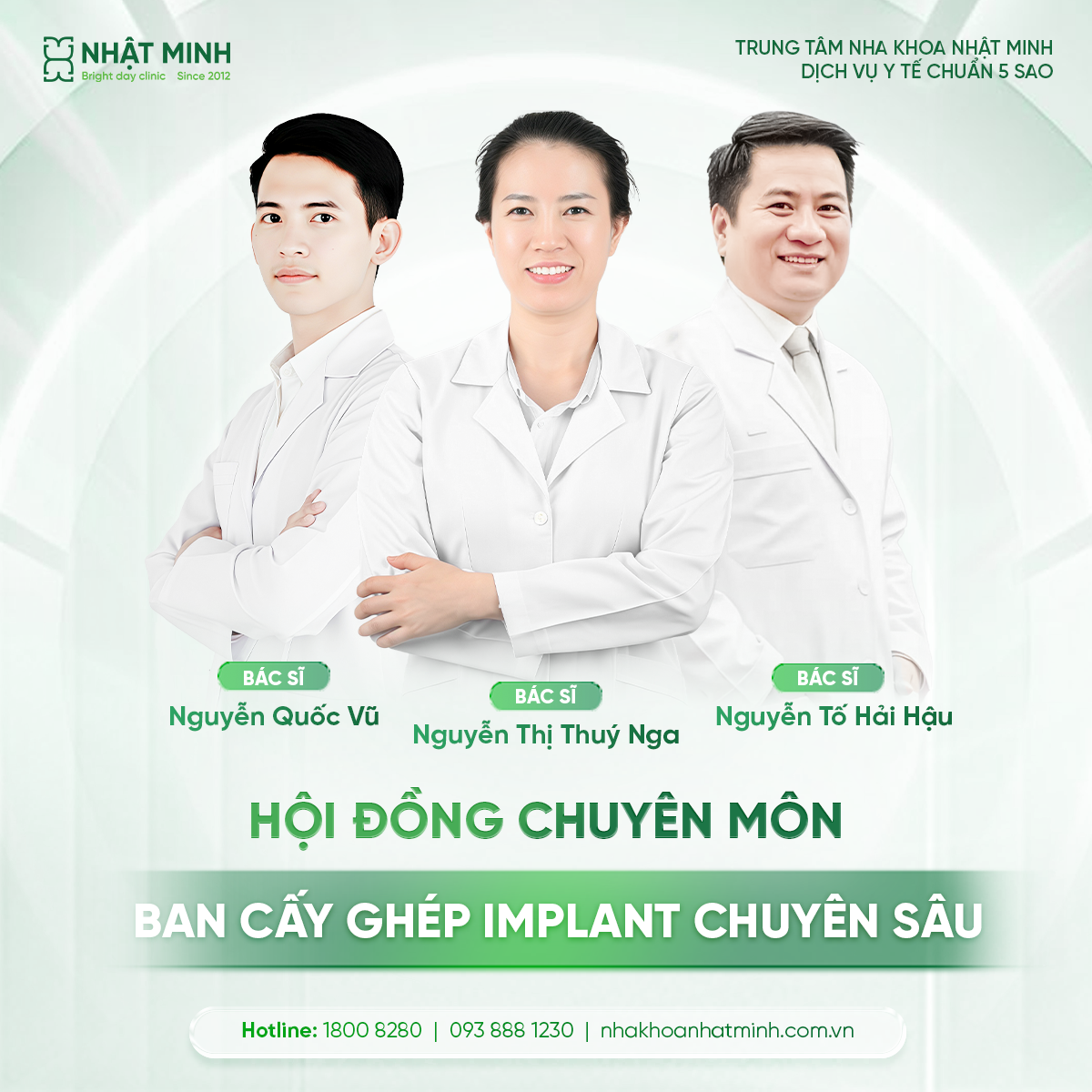 Với định hướng điều trị an toàn, chuyên sâu và bền vững, Nha khoa Nhật Minh là lựa chọn phù hợp cho những khách hàng mong muốn phục hồi răng mất bằng Implant một cách bài bản và lâu dài. Để biết chính xác tình trạng răng miệng và chi phí điều trị, khách hàng nên trực tiếp thăm khám và tư vấn cùng bác sĩ chuyên mô