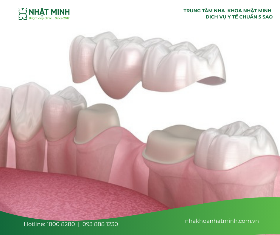 Bắc cầu răng sứ là phương pháp phục hình phù hợp cho trường hợp mất một hoặc vài răng liền kề, hoặc mất răng xen kẽ. Khi thực hiện, bác sĩ sẽ mài nhỏ hai răng thật khỏe mạnh ở hai bên khoảng trống mất răng để làm trụ nâng đỡ. Sau đó, một dải cầu răng sứ sẽ được gắn cố định lên trên, giúp lấp đầy vị trí răng đã mất.