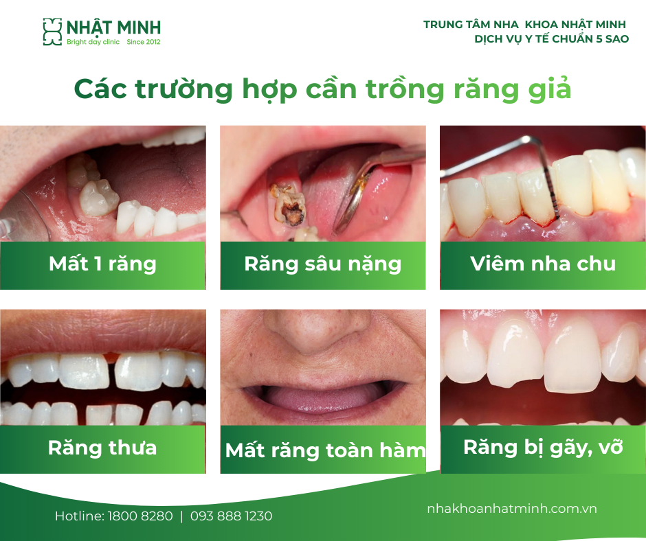 Theo khuyến cáo của các chuyên gia nha khoa, việc trồng răng giả sẽ mang lại hiệu quả cao cho những trường hợp đang gặp phải một trong những tình trạng sau đây: