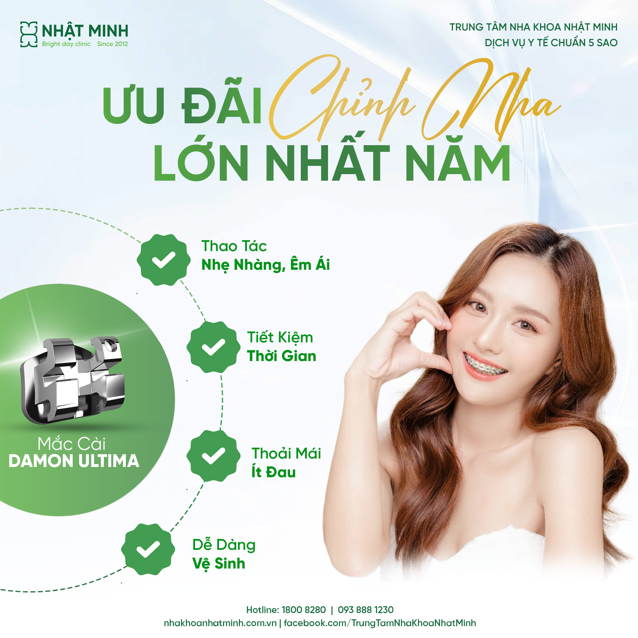 Ngoài ra, đội ngũ bác sĩ giàu kinh nghiệm của Nha khoa Nhật Minh sẽ trực tiếp thăm khám, chụp phim, phân tích tình trạng răng, khớp cắn và tư vấn lộ trình điều trị cá nhân hóa cho từng khách hàng. Đây là cơ hội để bạn được tiếp cận những kiến thức chuẩn y khoa cùng giải pháp chỉnh nha hiện đại nhất hiện nay.