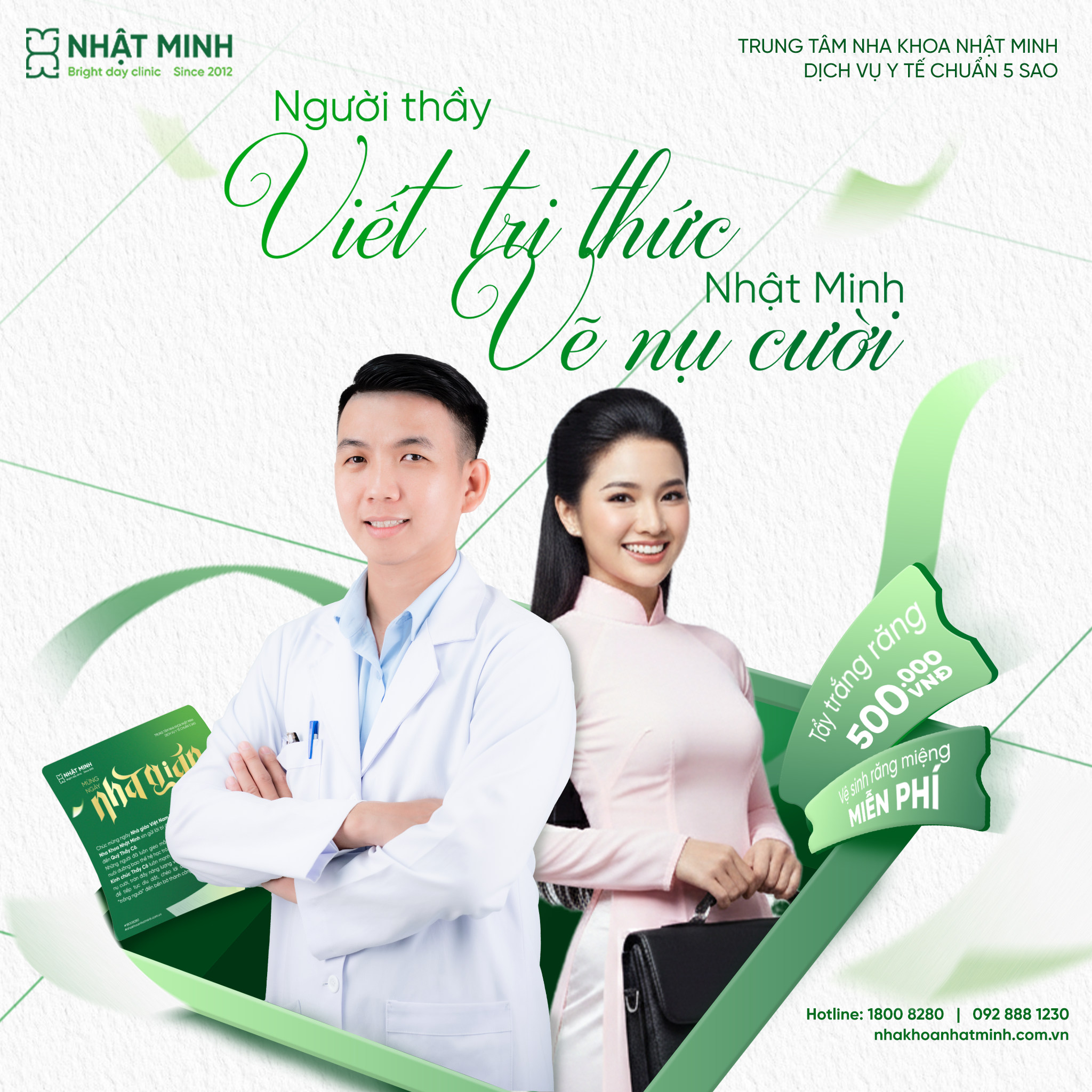 Nhân dịp kỷ niệm Ngày Nhà Giáo Việt Nam 20/11, Nha khoa Nhật Minh trân trọng gửi đến lời cảm ơn sâu sắc đến các Thầy Cô giáo - Những “người lái đò” tận tụy, âm thầm cống hiến cả tuổi xuân cho sự nghiệp trồng người. Để tôn vinh những đóng góp không mệt mỏi ấy Nha khoa Nhật Minh mang đến chương trình ưu đãi đặc biệt cho dịch vụ tẩy trắng răng, kèm theo đó là phần quà tặng tri ân trị giá lên đến 3.000.000đ. Đây không chỉ là món quà vật chất, mà còn là cách chúng tôi gửi gắm sự biết ơn chân thành, mong muốn cùng thầy cô kiến tạo những nụ cười rạng rỡ, tự tin và khỏe mạnh trên hành trình phía trước.